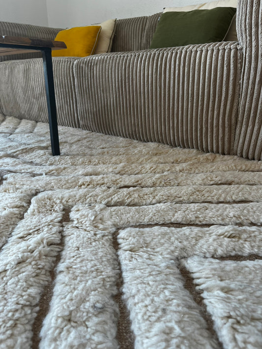 TAPIS BERBÈRE A LIGNES TAUPE & ÉCRU
