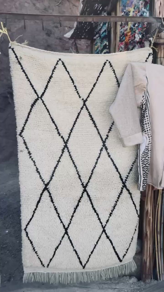 TAPIS BERBÈRE ÉCRU À LOSANGES NOIRS